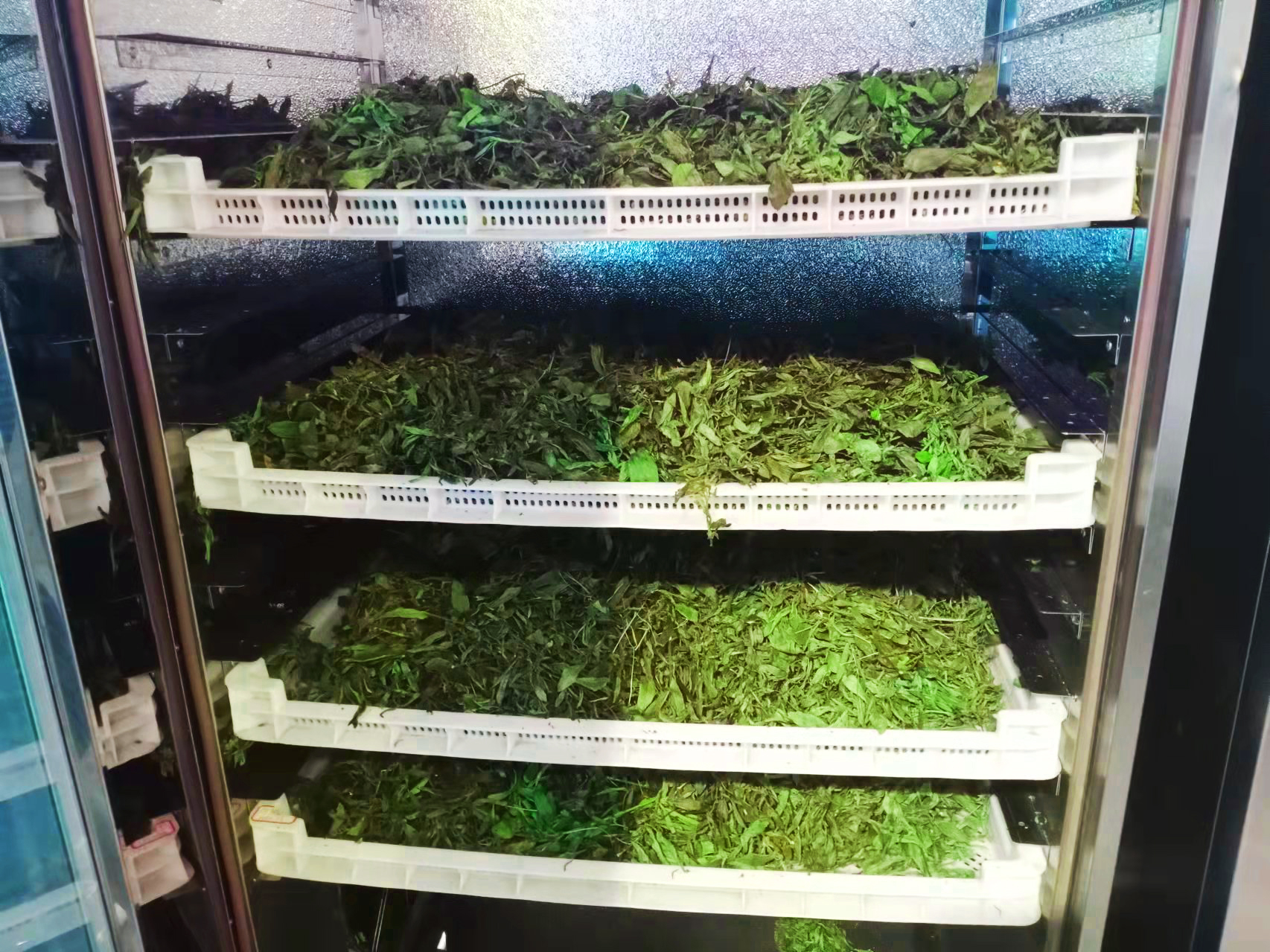甜菊葉在烘干過程中容易發生酶促褐變和焦糖化反應。傳統晾曬方式受天氣影響大,陰雨天無法及時干燥,甜菊葉堆積發熱,導致葉片發黑、發黃。成品色澤不均勻,市場售價至少降低20%-30%。